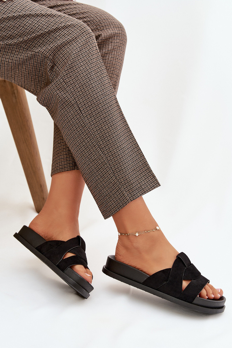 Pantofole da donna nere in scamosciato sintetico con fasce Tai turirivessa
