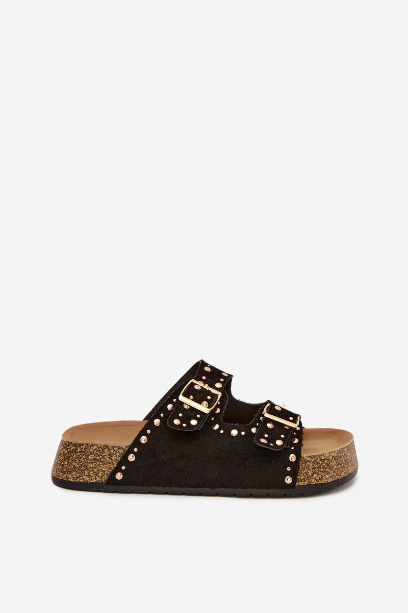 Pantofole da donna nere con fibbie e borchie dorate Tervina