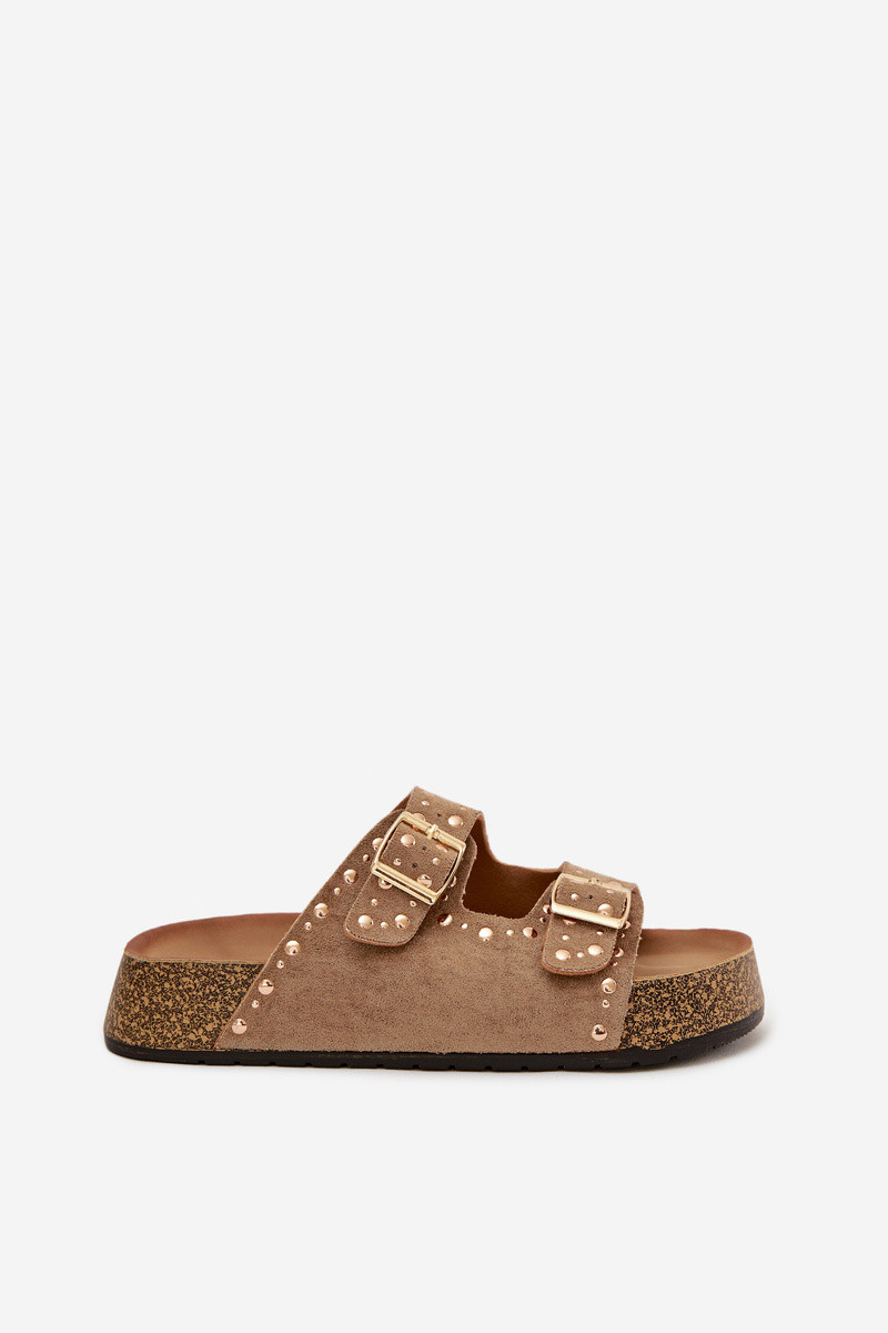Pantofole da donna color khaki con fibbie e borchie dorate Tervina