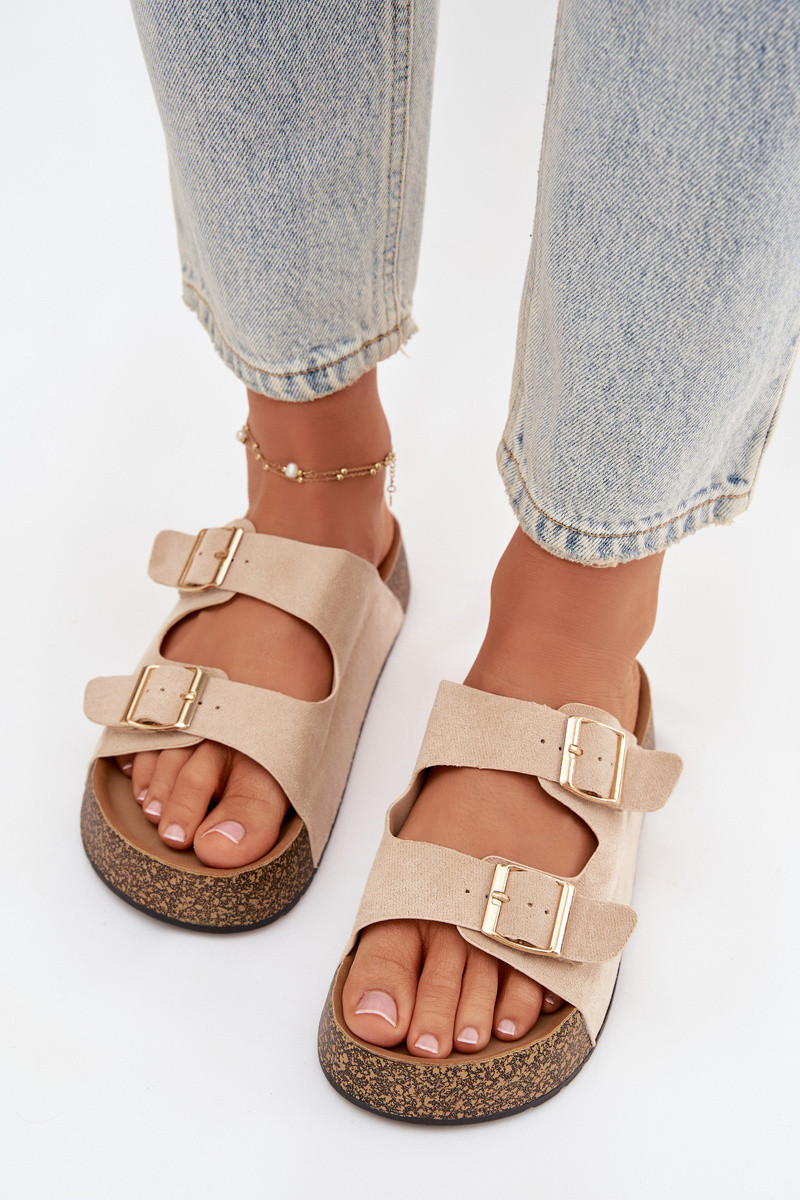 Ciabatte da donna con plateau e fibbie color oro "Tovessa" color avorio