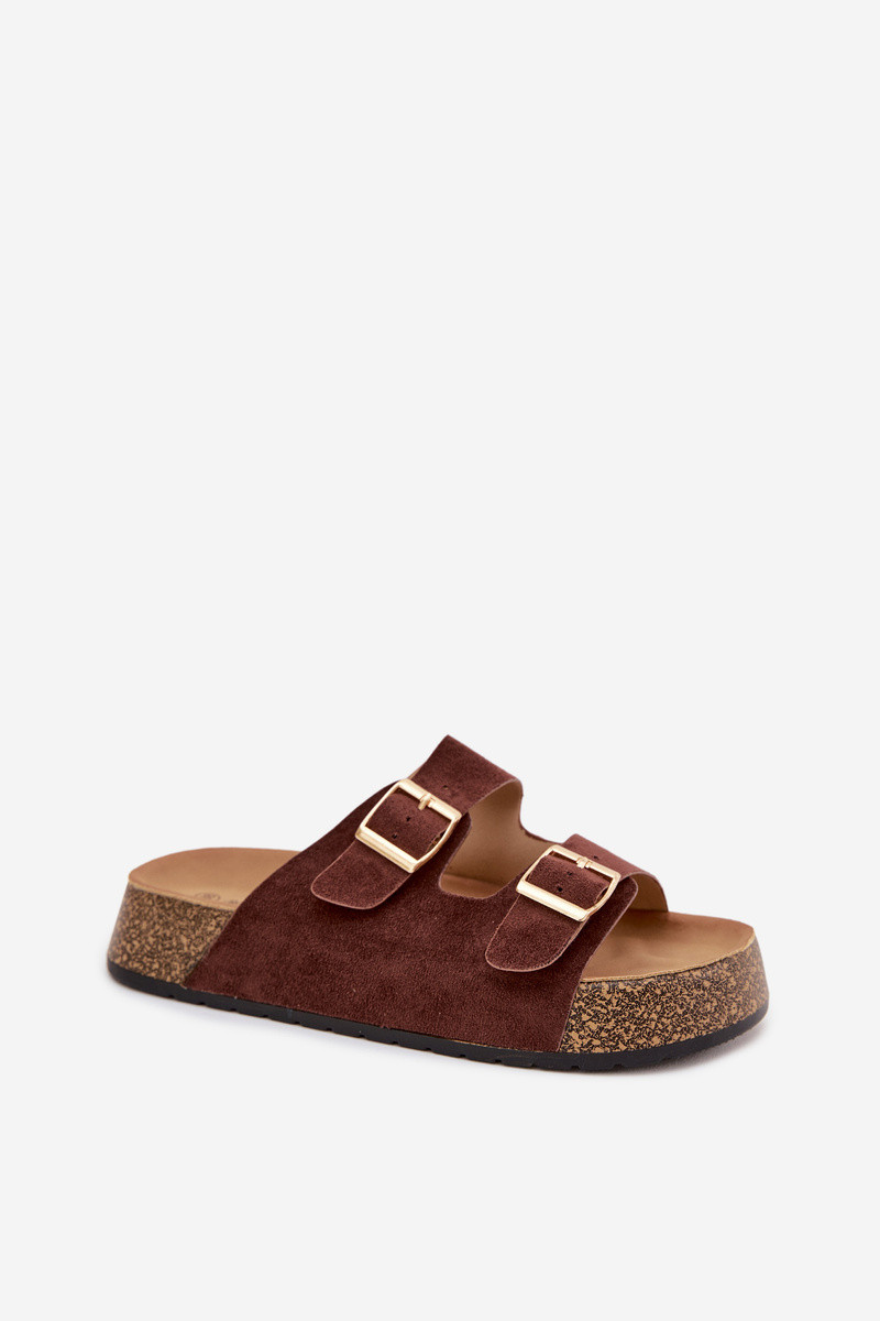 Pantofole da donna con una piattaforma Ze colore doratomi con fibbiemi colore marrone Tovessa
