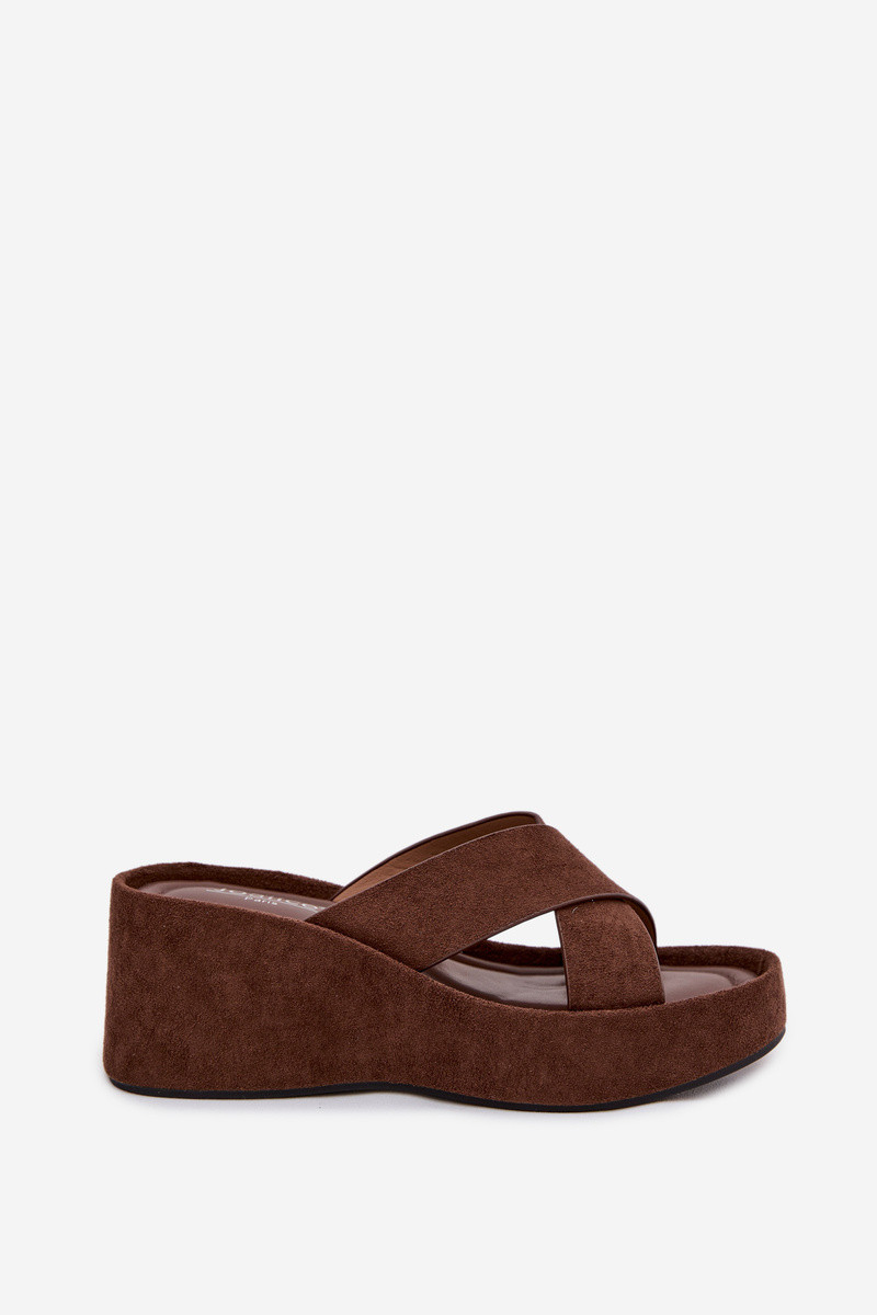 Ciabatte da donna in suede sintetico con plateau "Calorine" color cioccolato