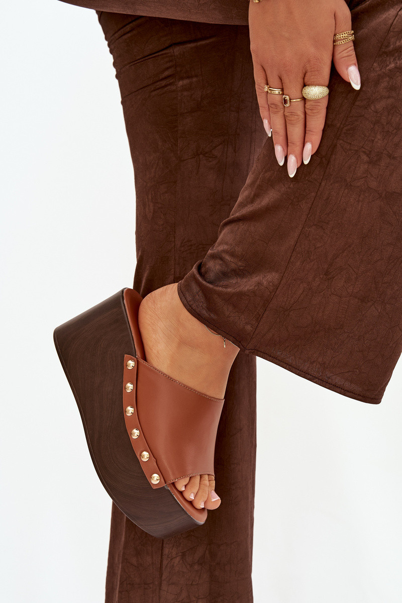 Pantofole da donna Su un cuneo con rivetti colore marrone Devereline