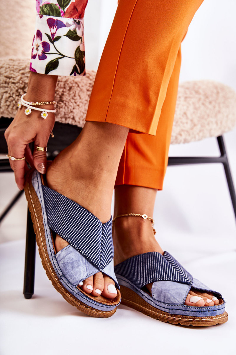 Pelle Profilato Pantofole Deveciejka 04986-17 colore blu