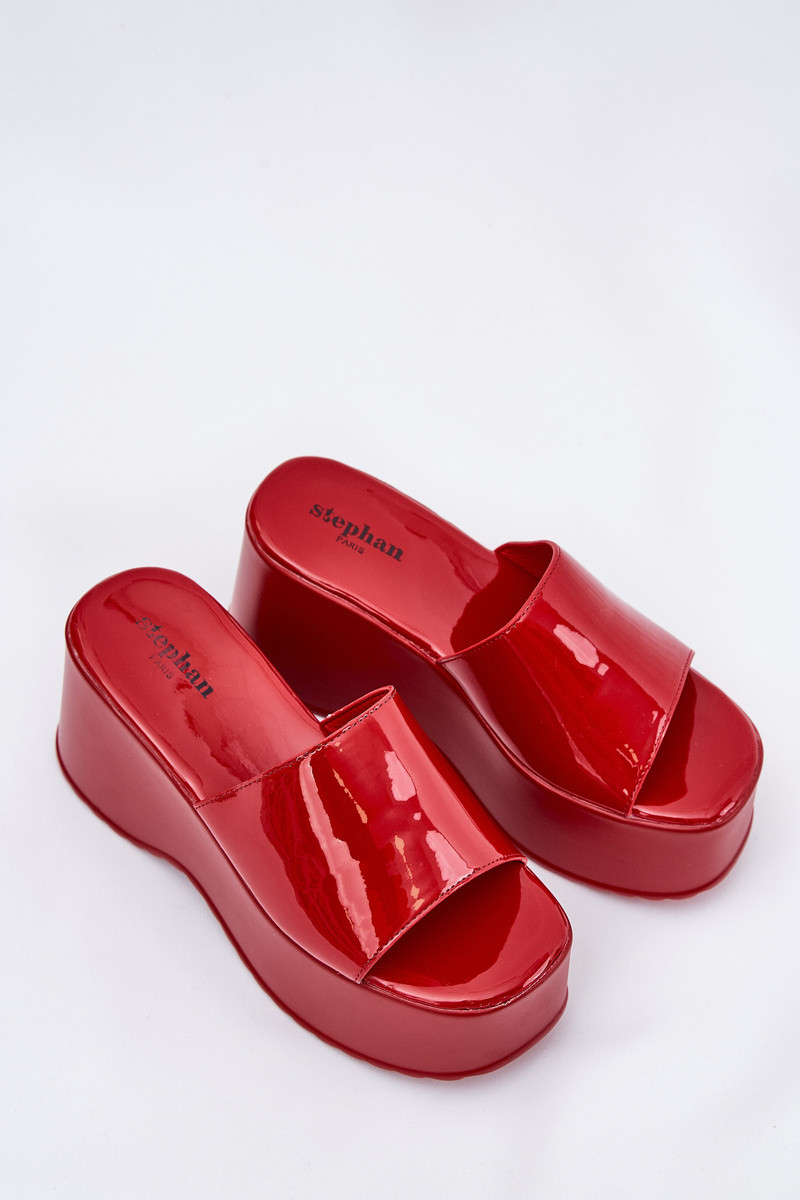 con effetto vernice Pantofole da donna con una piattaforma I Koturnie colore rosso Nellevia