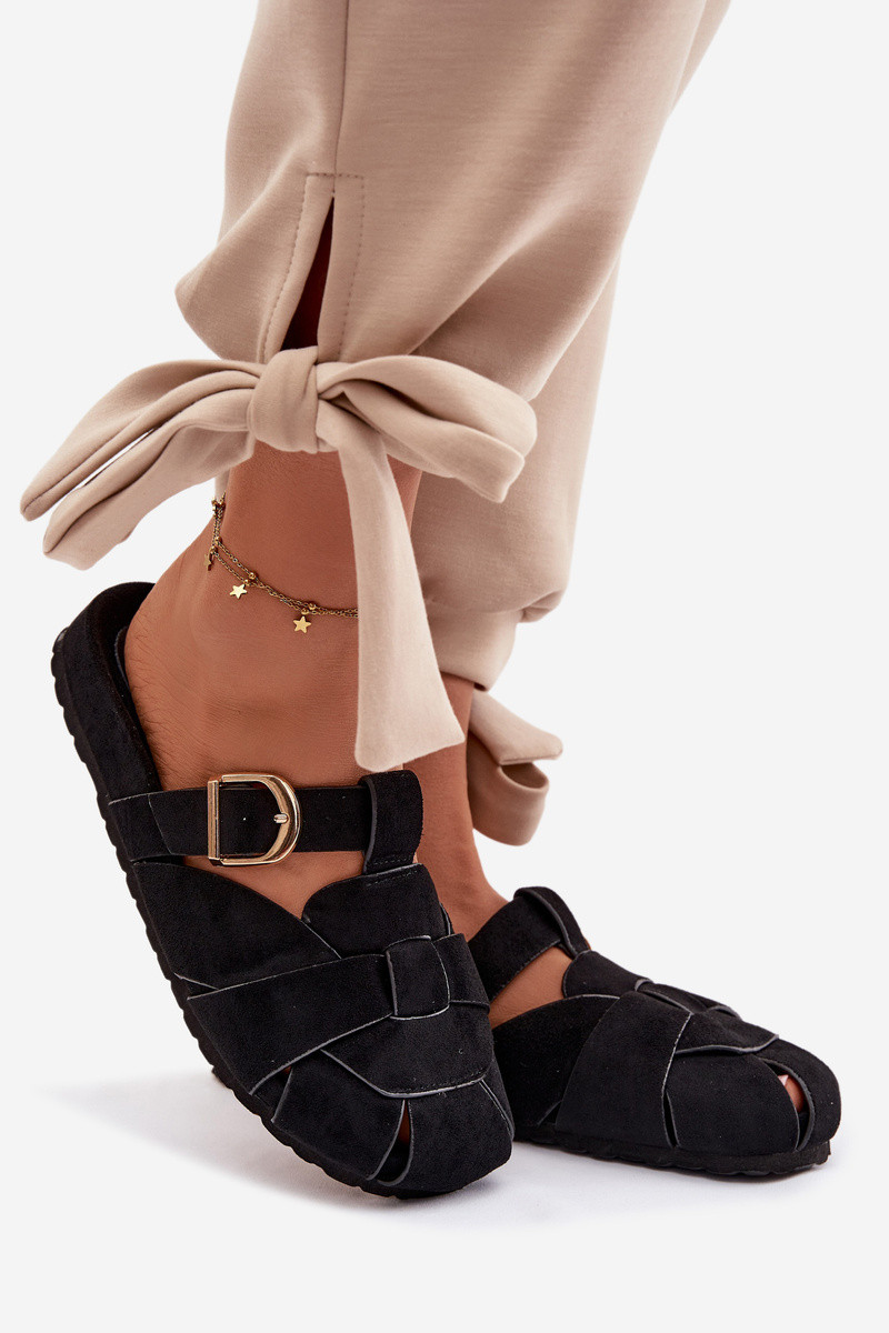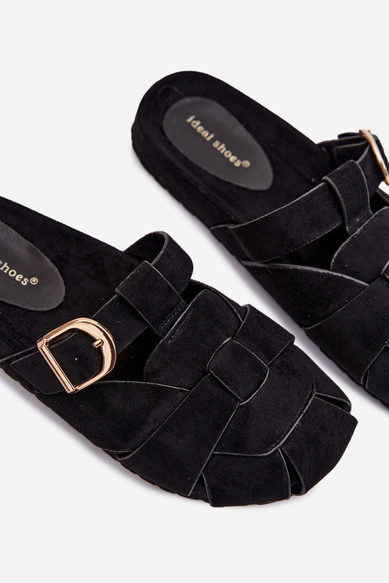 Pantofole da donna Mule con fasce e fibbie dorate color nero Ganelle