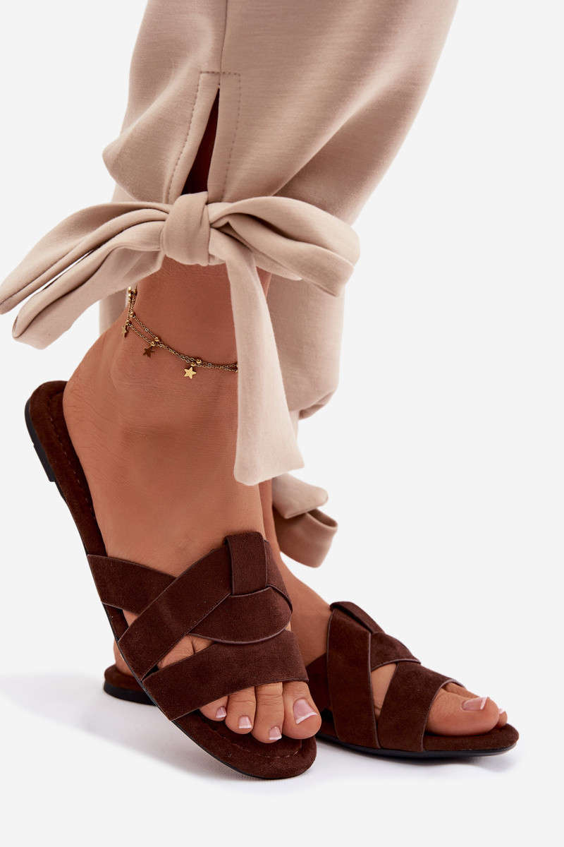 Pantofole piatte con fasce color cioccolato Pavelle