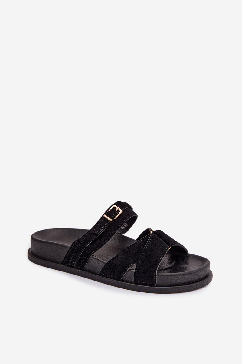 Pantofole da donna con strisce I Złotą con fibbie colore nero Selorina