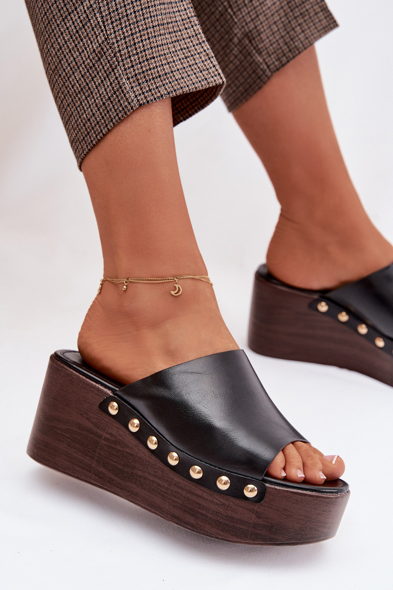 Pantofole con plateau e borchie dorate nere Farinelle