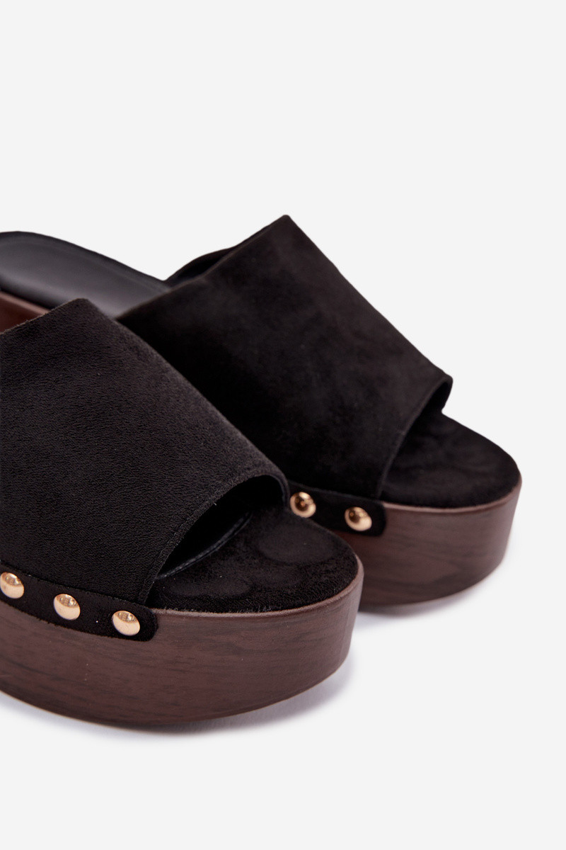Pantofole da donna Su un cuneo Ze colore doratomi Borchie in ecopelle scamosciataoAe colore nero Helivina