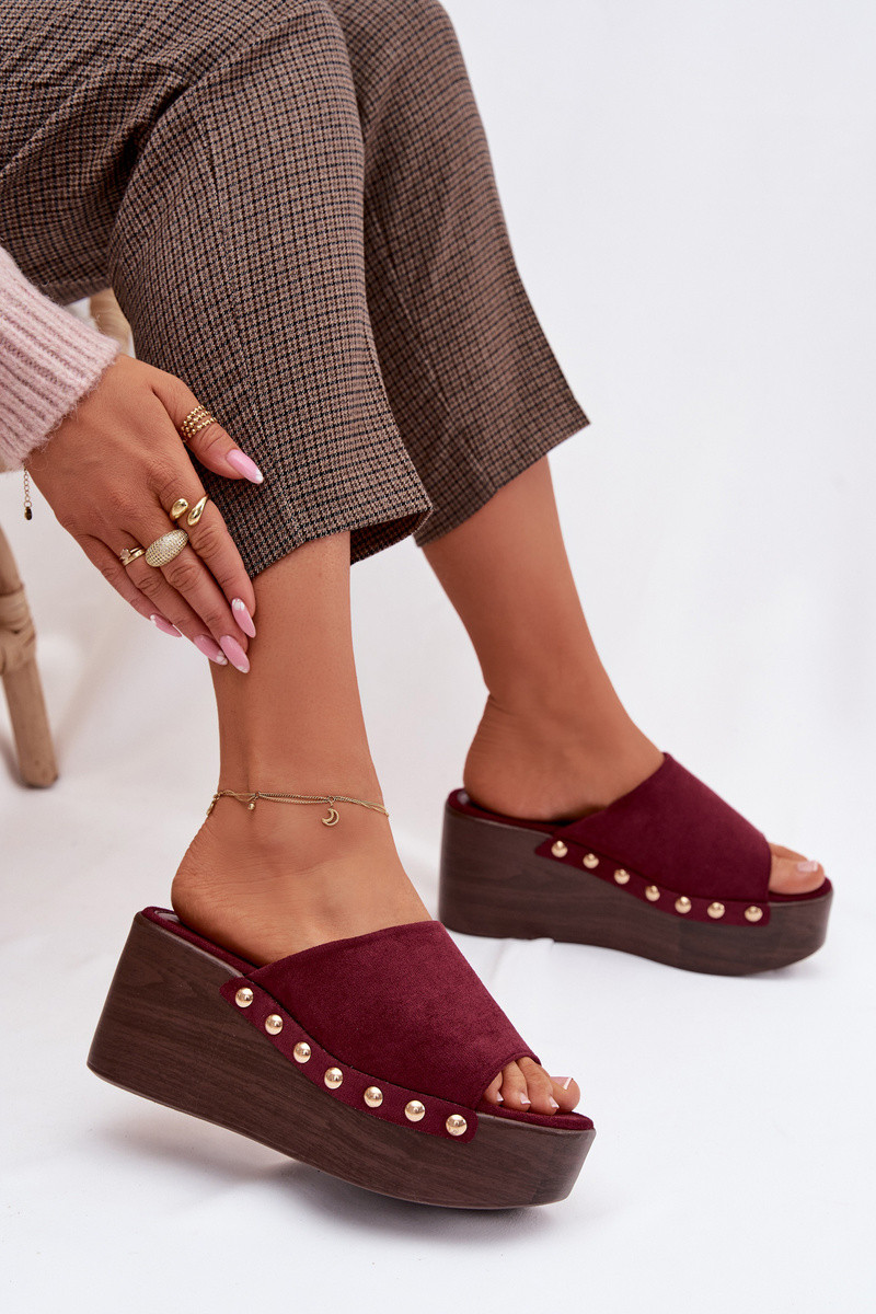 Pantofole da donna Su un cuneo Ze colore doratomi Borchie in ecopelle scamosciataoAe Borgogna Helivina