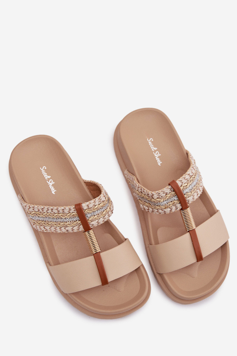 Pantofole da donna con una piattaforma con strisce I colore doratom Detalem beige Tahlia