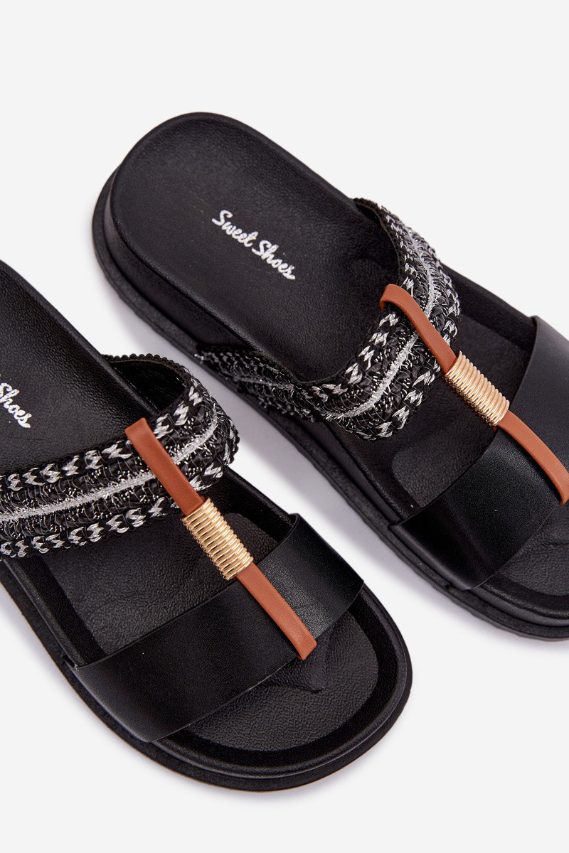 Pantofole da donna con piattaforma e fasce e dettagli dorati, nere, Tahlia