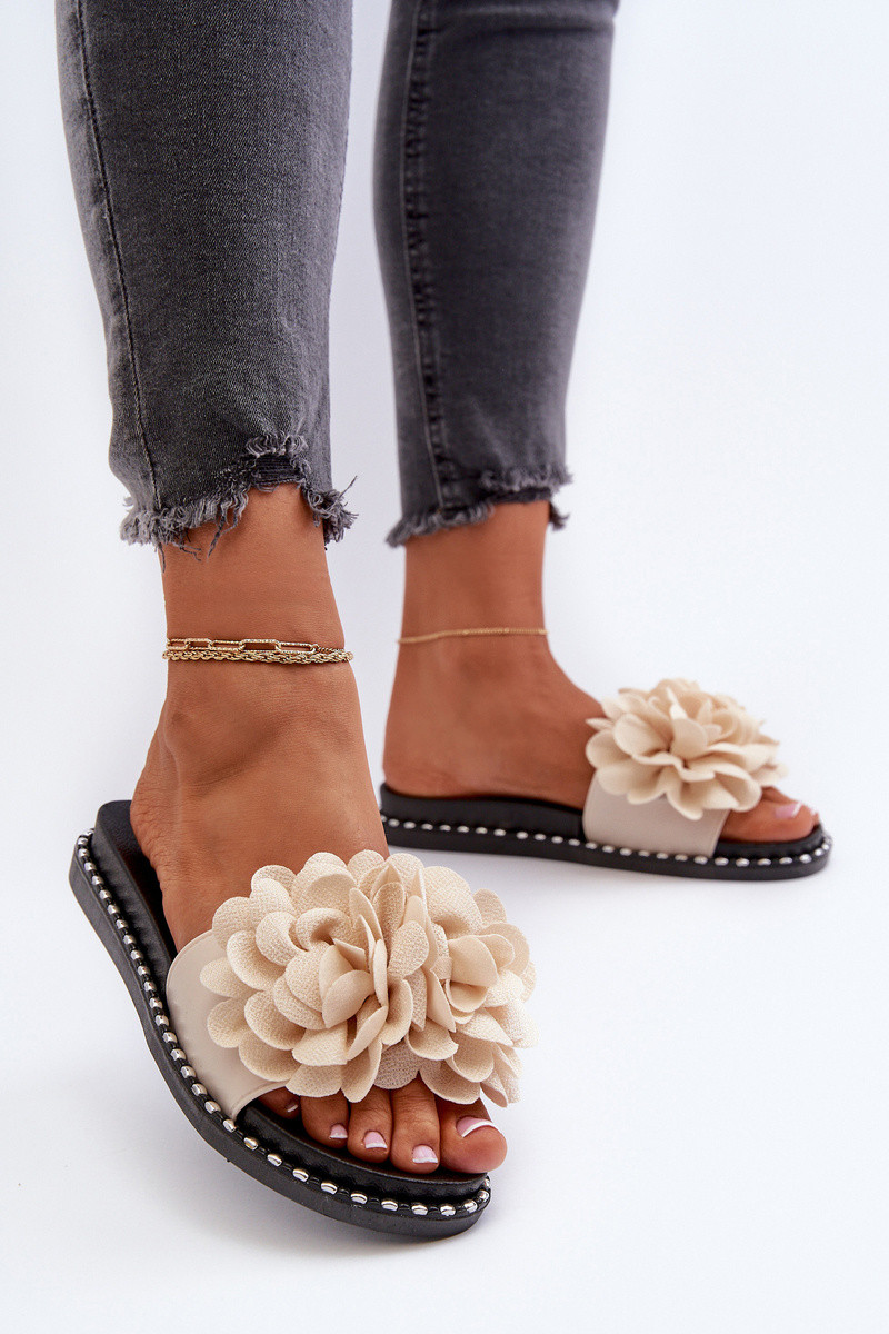 Pantofole da donna Ozdobione con motivi florealiami beige Cellanen