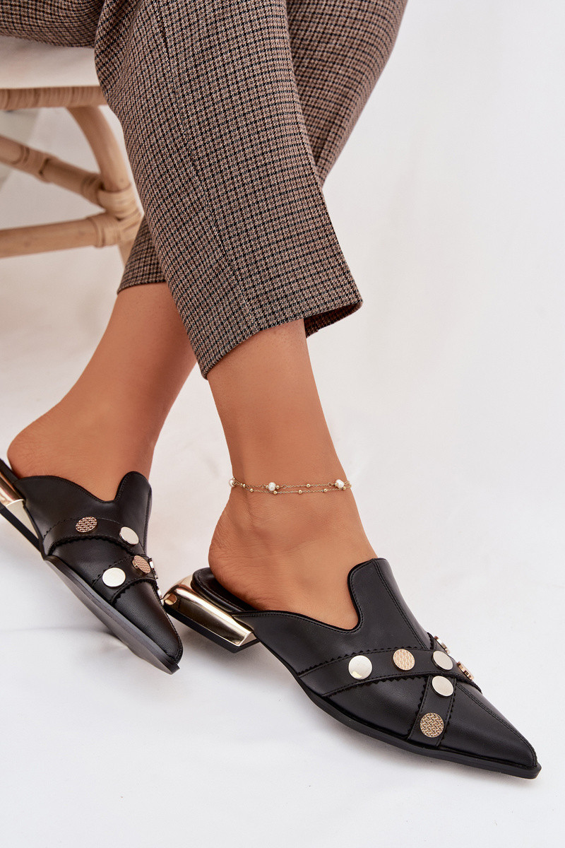 Pantofole in pelle Mule Femminile con cinghie D&A CR61-3058 colore nero