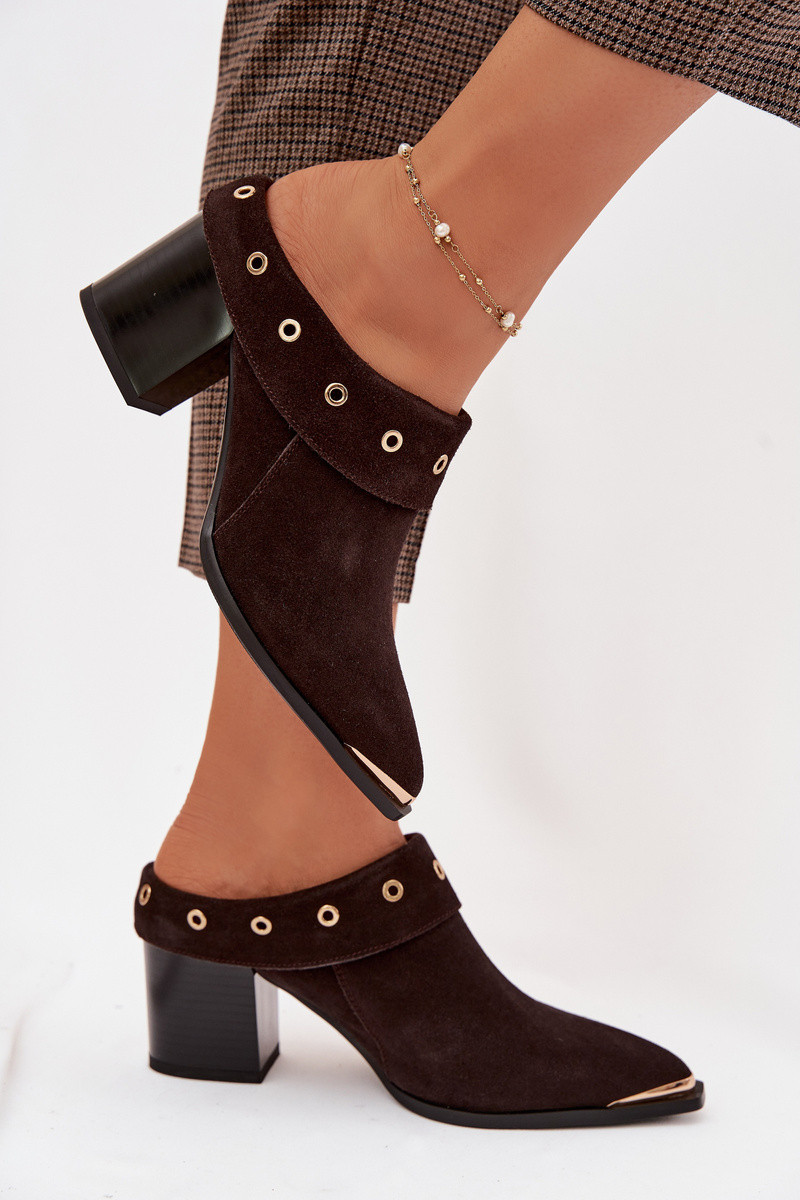 Pantofole in camoscio stile cowboy con tacco D&A CR61-3059 color cioccolato