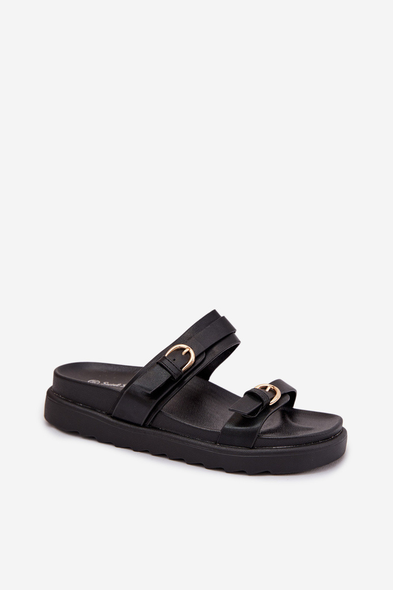 Pantofole da donna con una piattaforma con strisce I colore doratomi con fibbiemi colore nero Rirea
