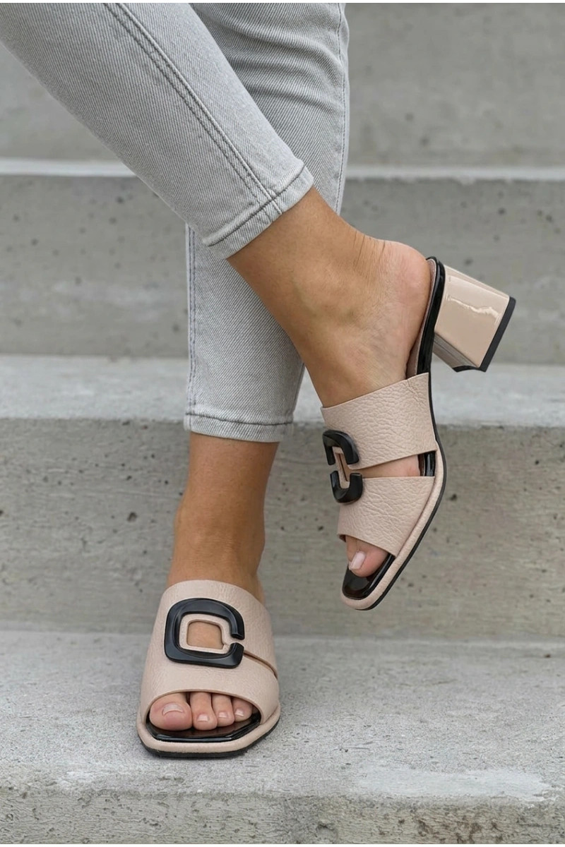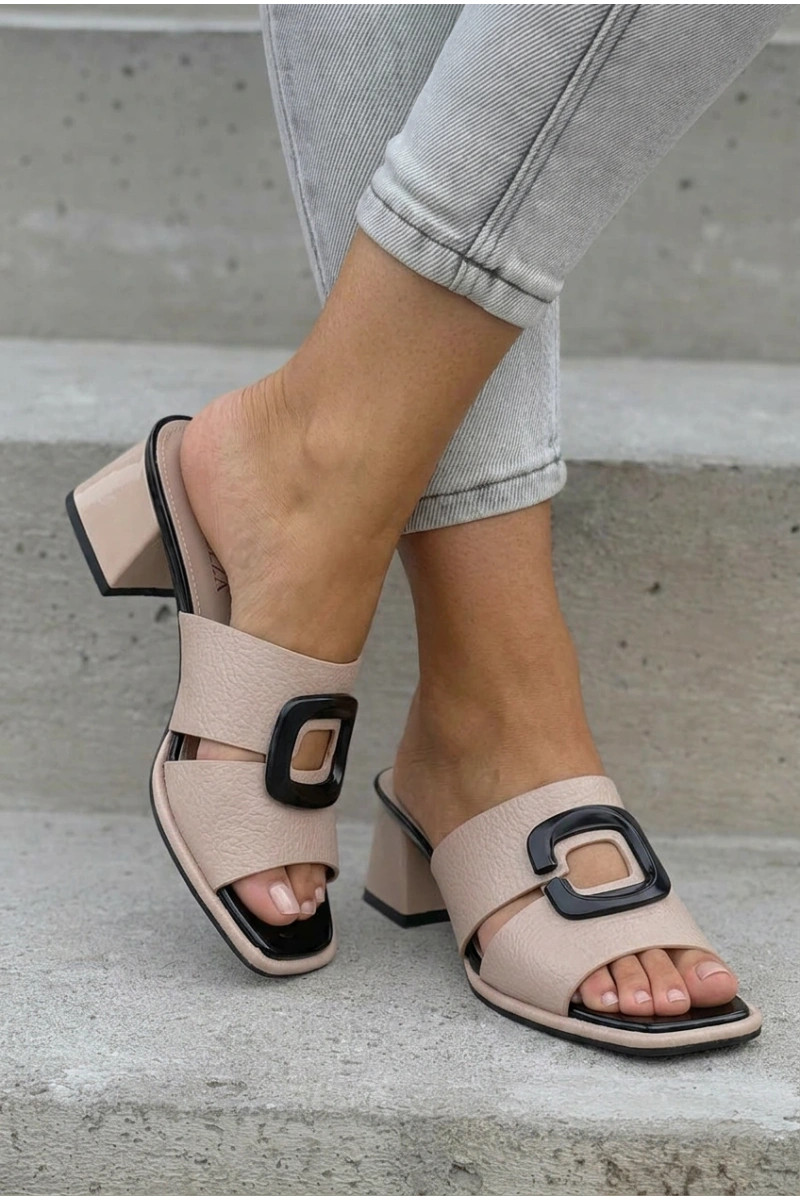 Pantofole da donna Ritagliare I con fibbie con i tacchi Vinceza 62284 beige