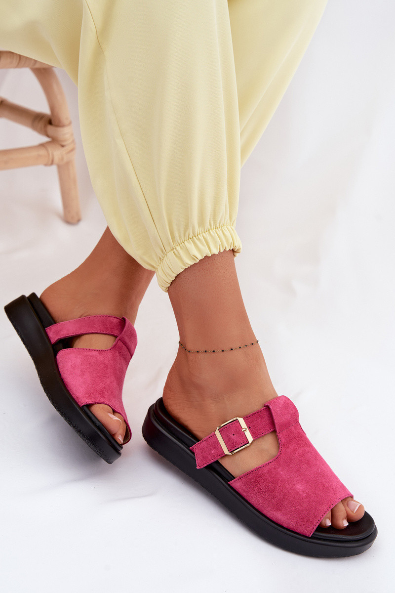Pantofole da donna in pelle scamosciata con una piattaforma con fibbie dorate colore rosa Zemela