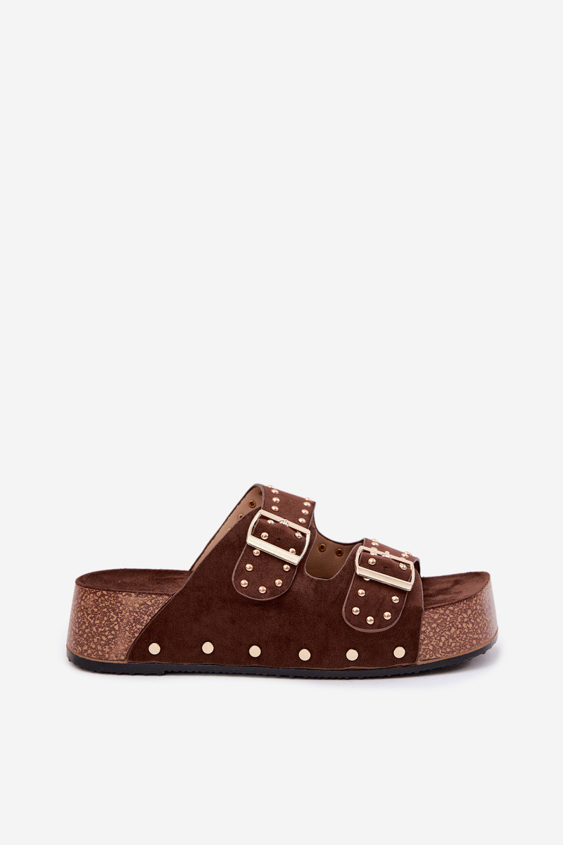 Pantofole color cioccolato per donna con fibbie e borchie Ledira