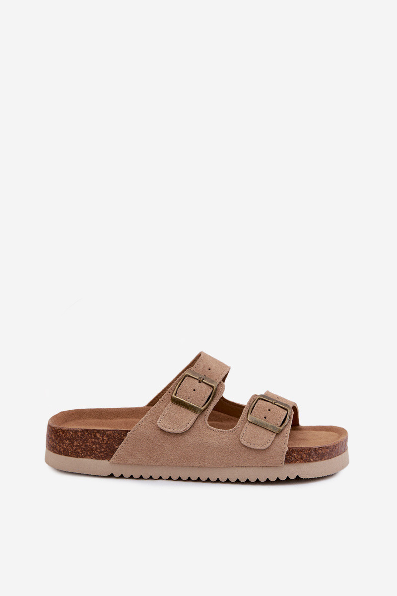 Ciabatte in pelle marrone con fibbie Rosaliae
