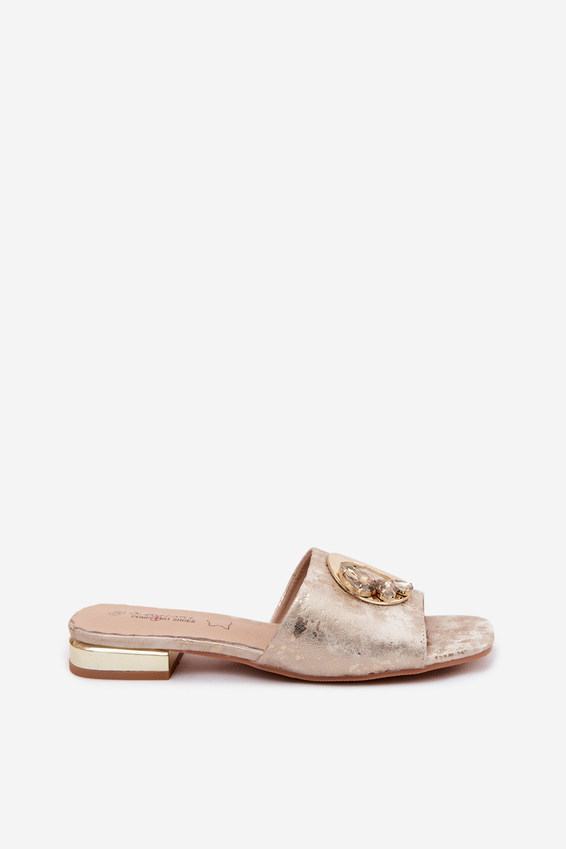 Pantofole da donna con tacco largo e ornamenti KV61-6025 colore oro