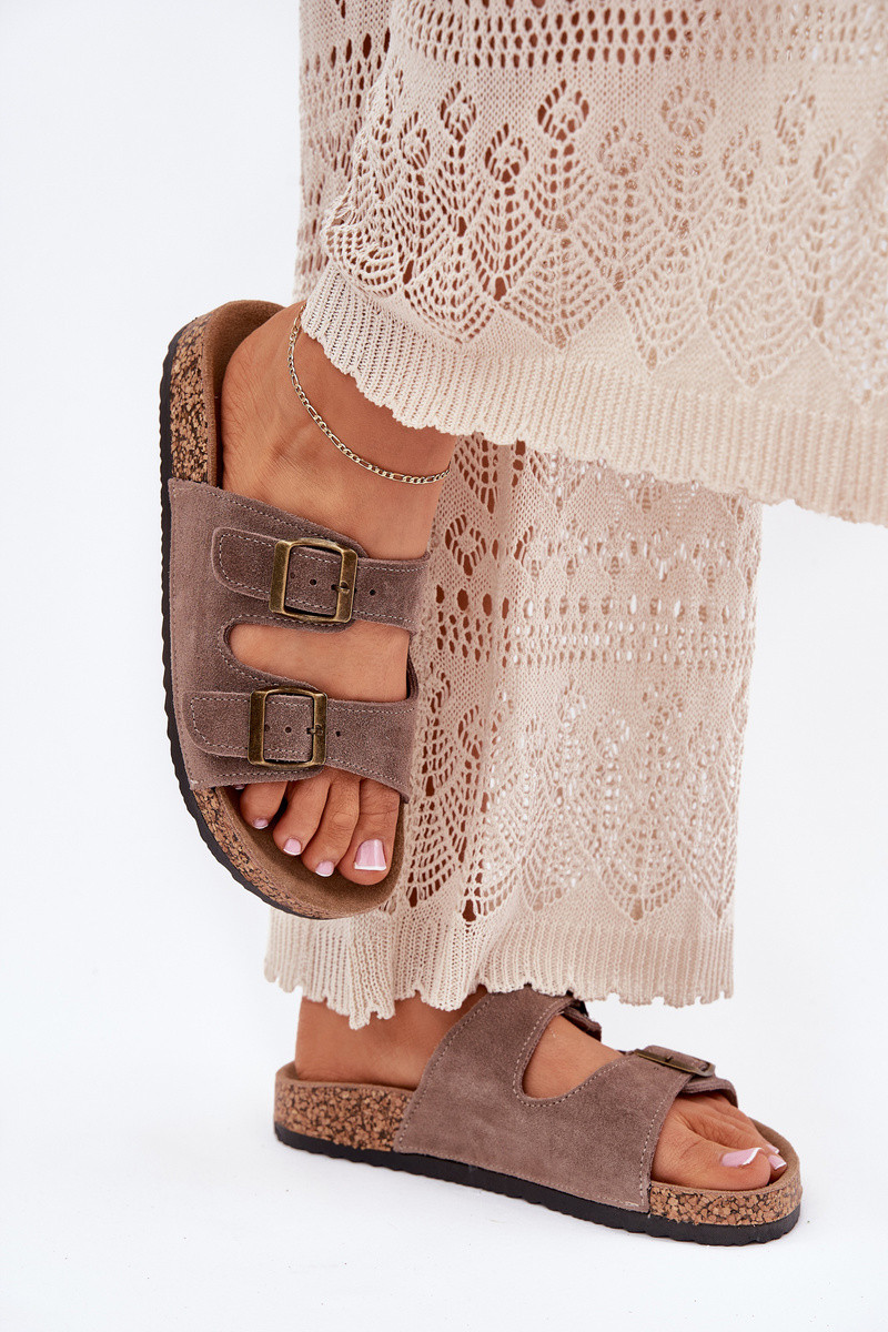 pantofole in pelle scamosciata Su suola in sughero con fibbie beige Tavira