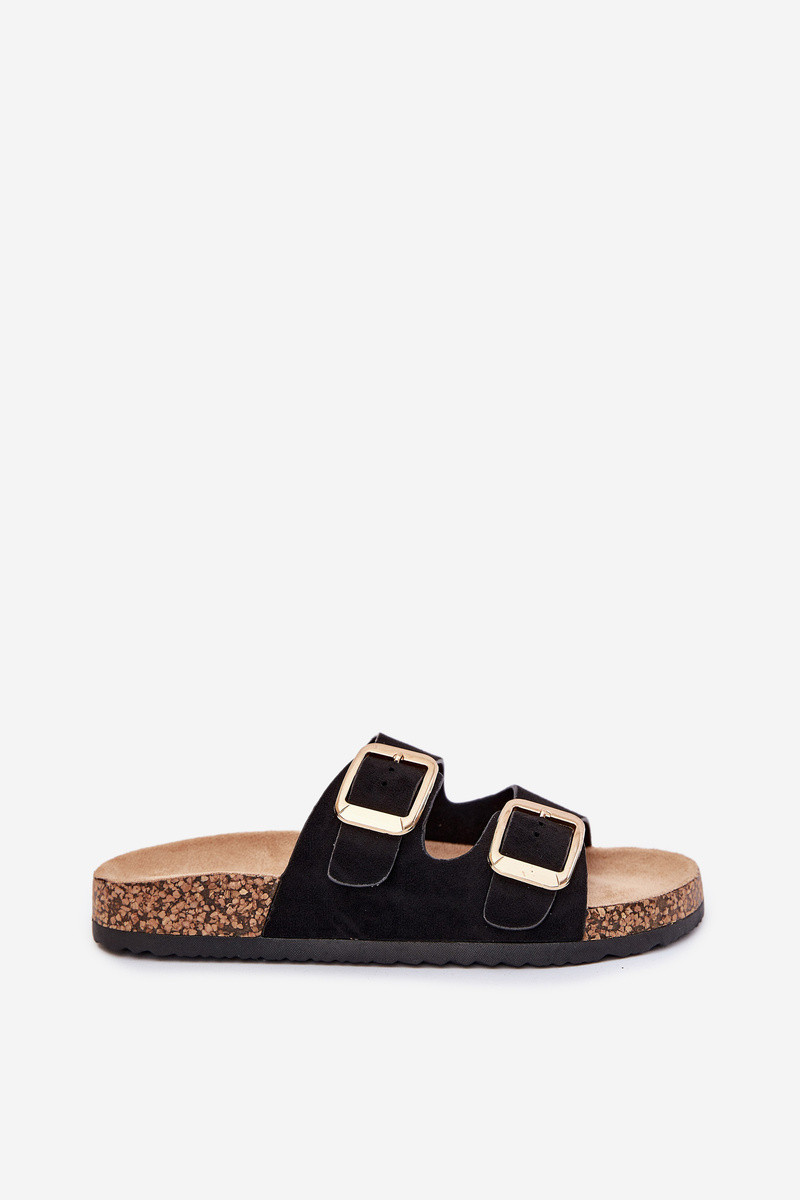 Pantofole in finta suede color sabbia con fibbie dorate Vorella