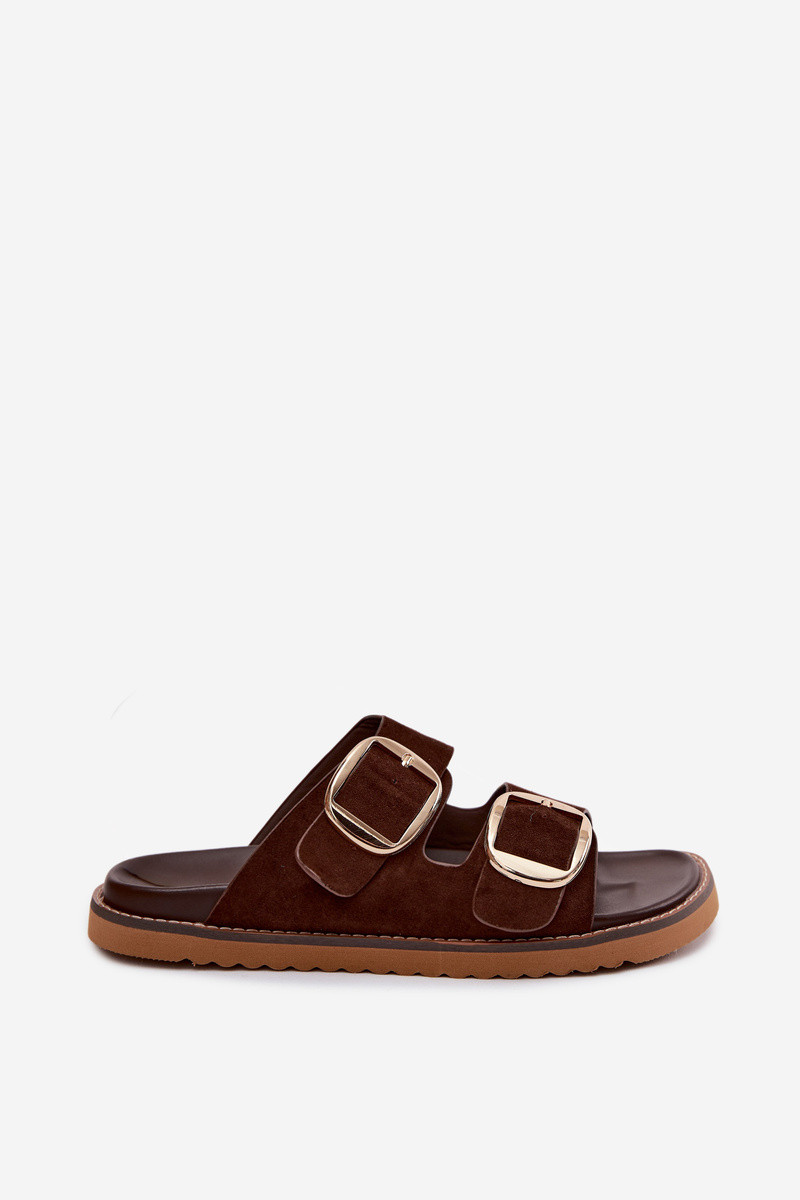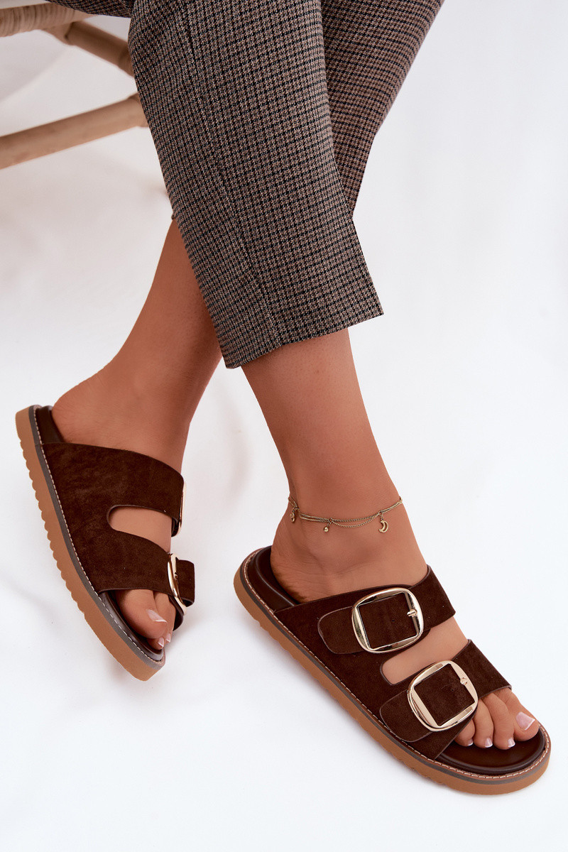 Infradito da donna in suede sintetico con fibbie dorate Czekolado Averia
