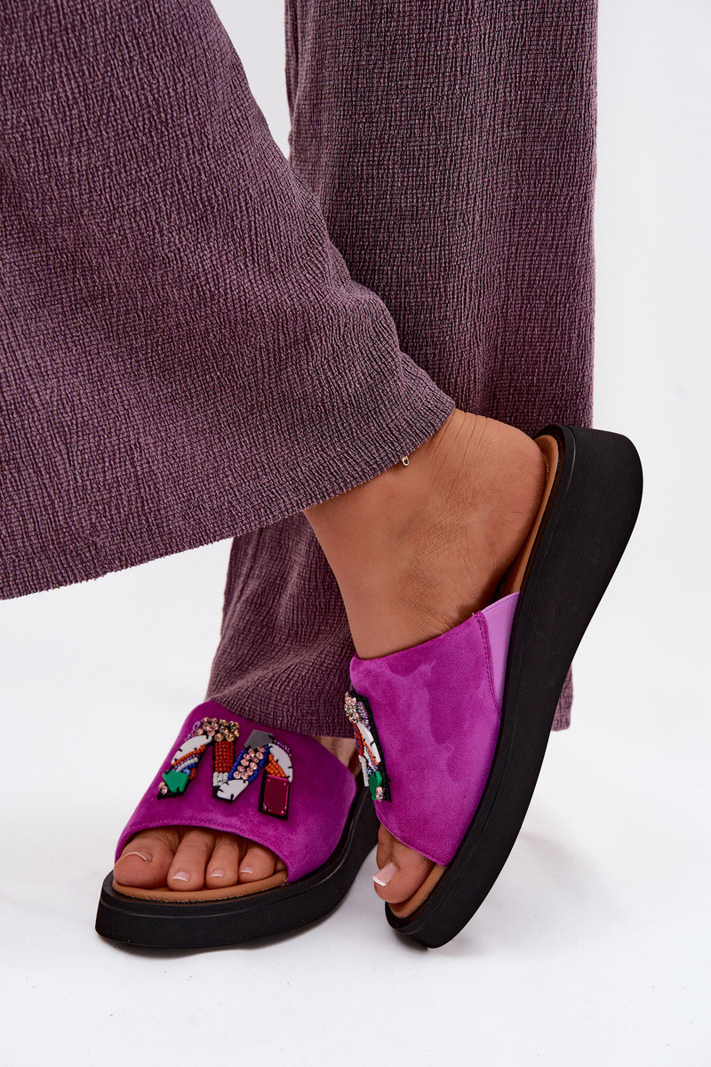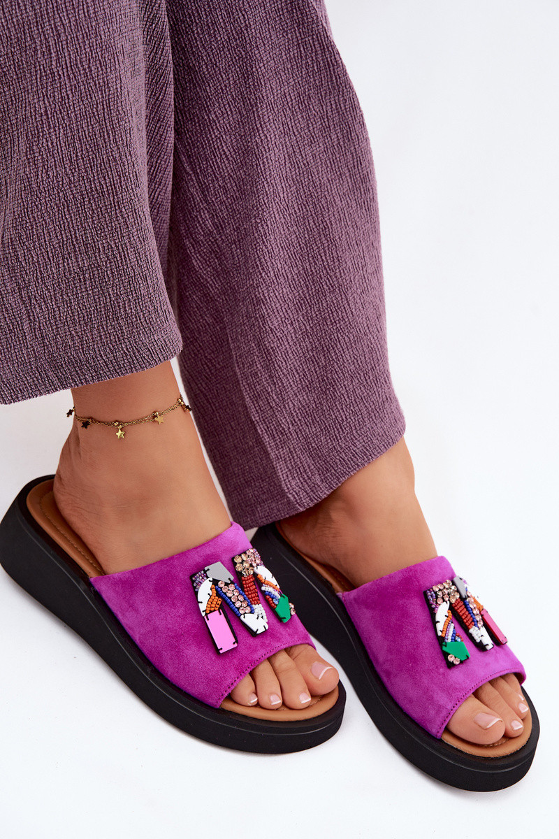 Pantofole da donna in suede sintetico con ornamenti e piattaforma Vinceza 66942 color rosa