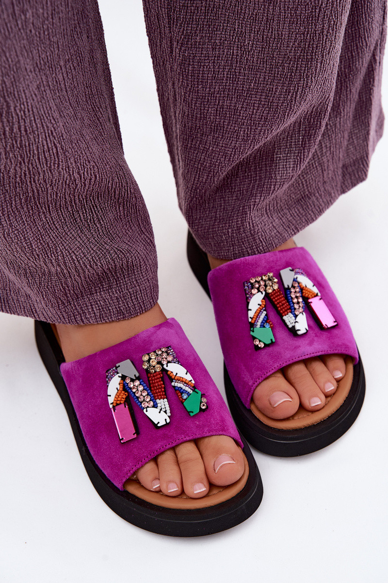 Pelle Pantofole da donna in pelle scamosciata con ornamenti con una piattaforma Vinceza 66942 colore rosa