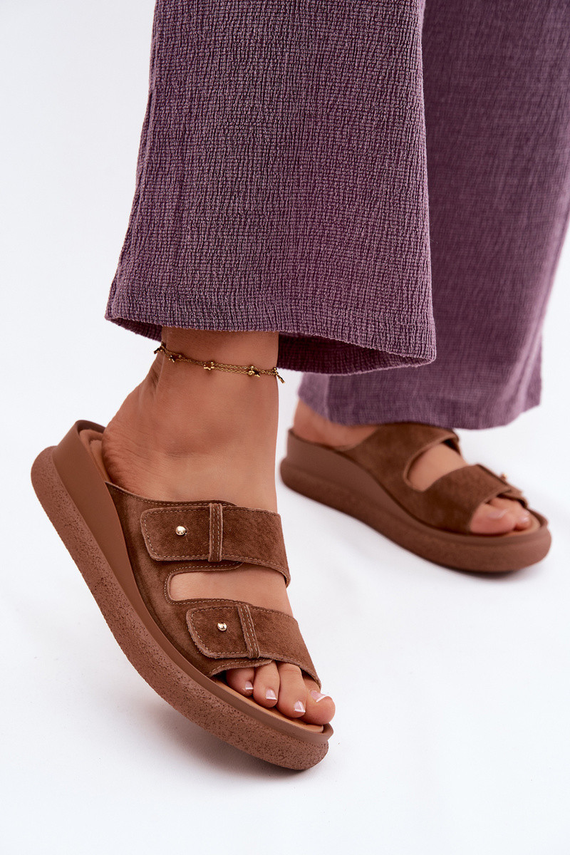Infradito da donna in suede sintetico marroni su una piattaforma Vinceza 66916