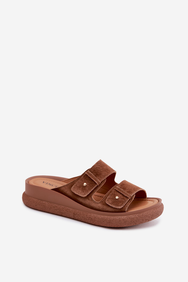 Pelle Pantofole da donna in pelle scamosciata con una piattaforma Vinceza 66916 colore marrone
