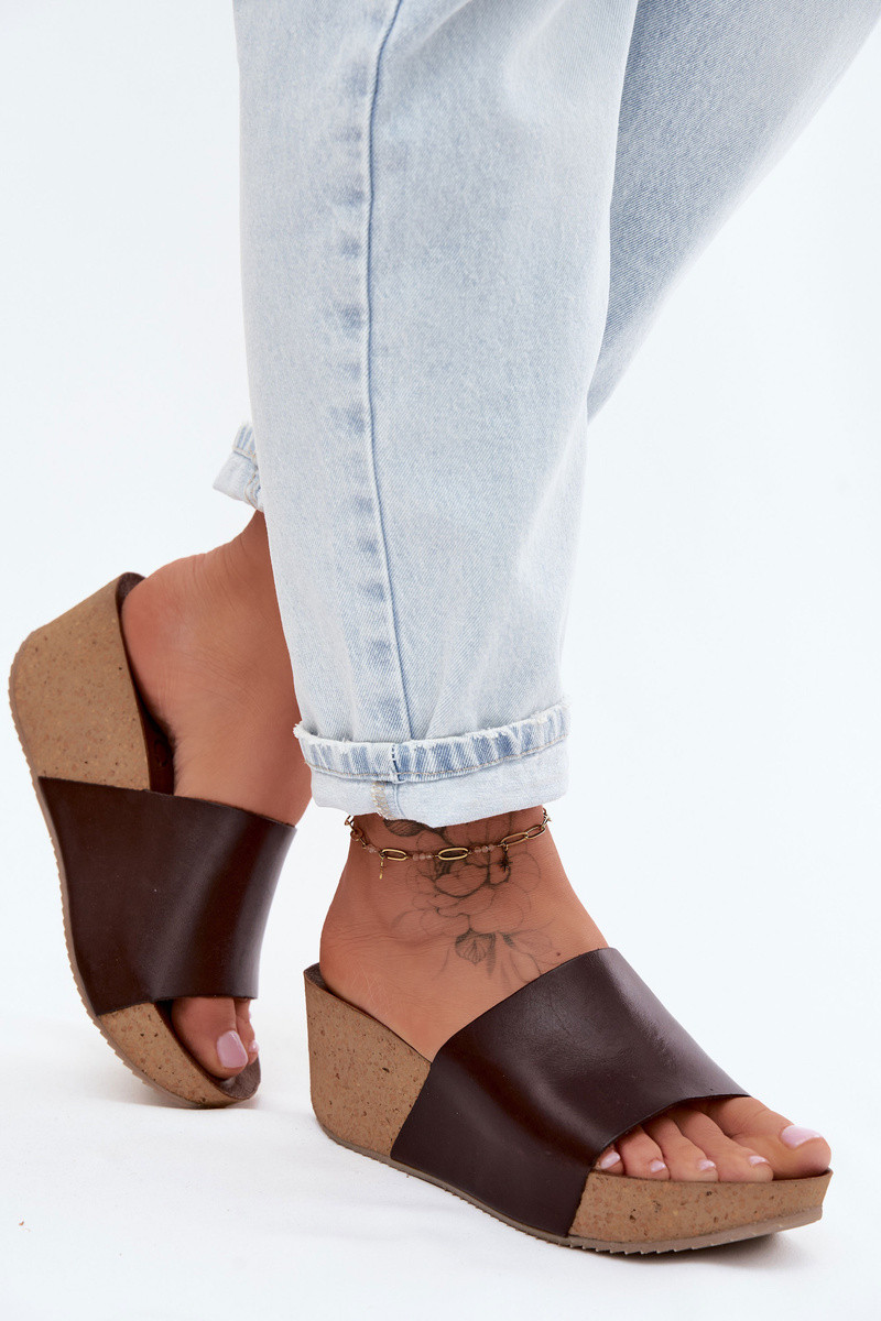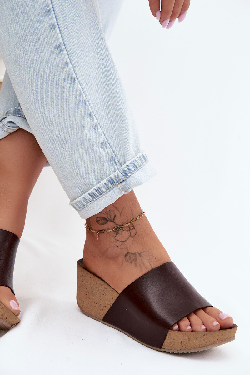 Zazoo 40291 Pantofole in pelle marroni da donna su suola di sughero