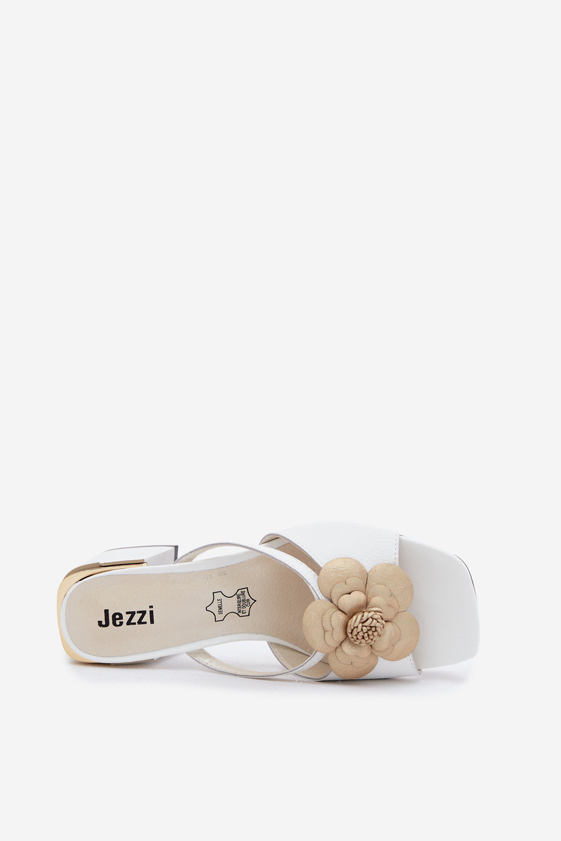 Pantofole in pelle con fiore e tacco sabbia Catva