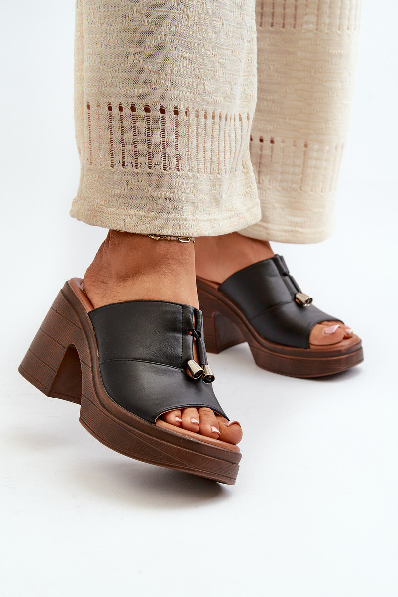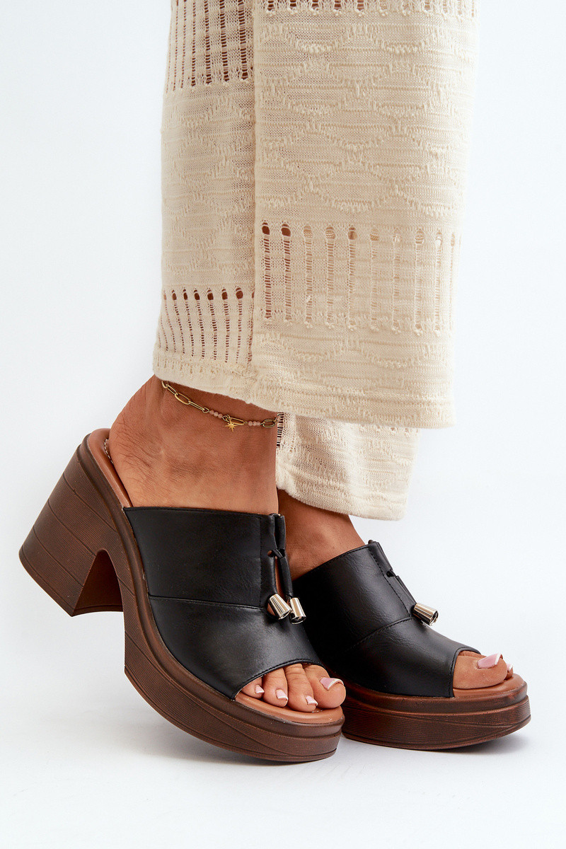 Pantofole da donna in ecopelle con una piattaforma I Klocku colore nero Dafira