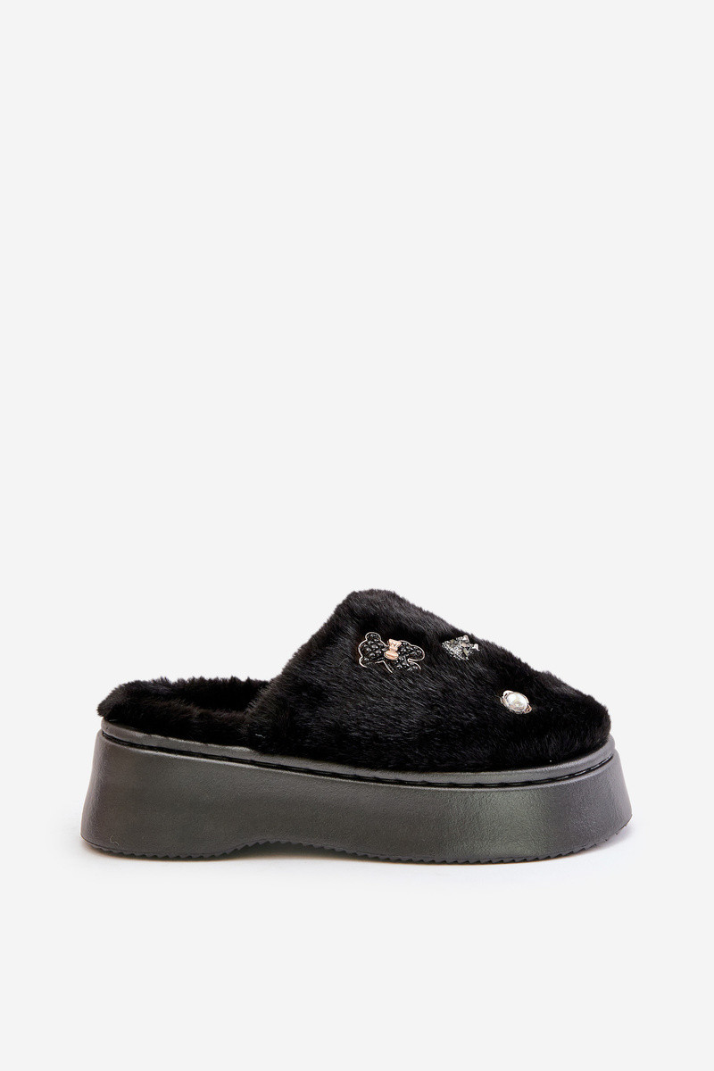 con una pelliccia Pantofole Femminile Su una suola spessa Z Przypinkami colore nero Zintoria