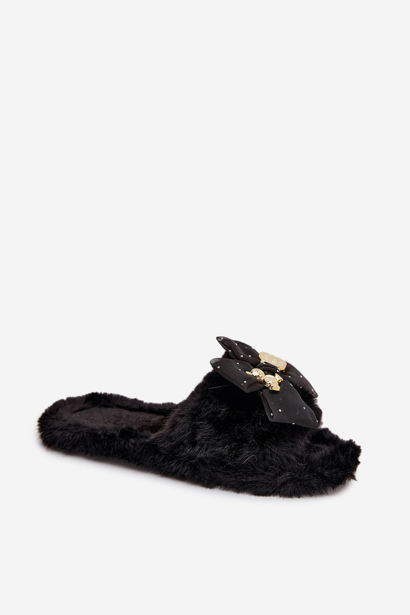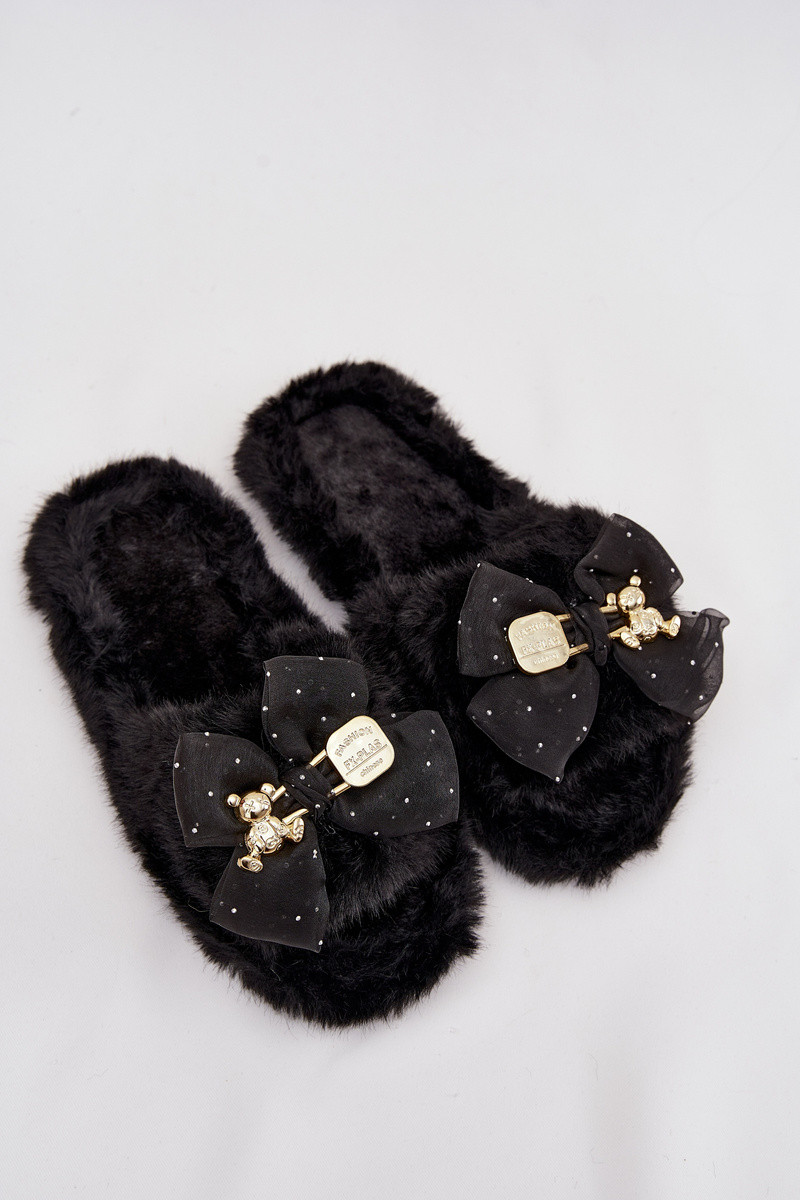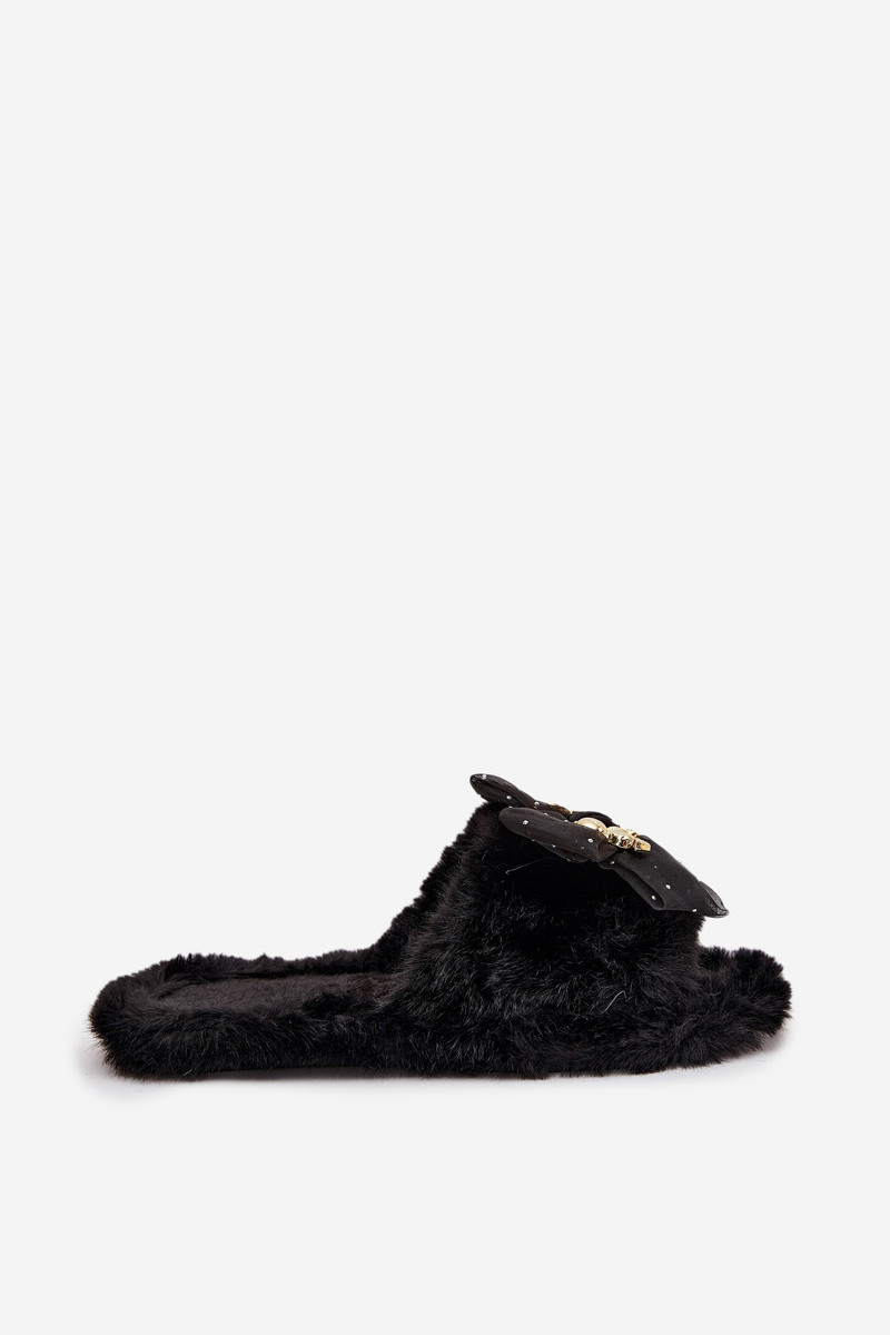 con una pelliccia Pantofole Femminile con nastri I Złotą Ozdobą colore nero Nolara