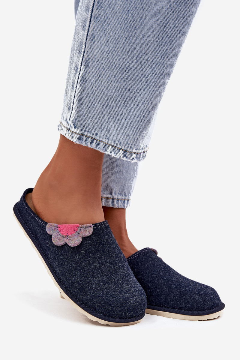 Ciabatte da donna con fiore, Inblu CS000043, color blu scuro