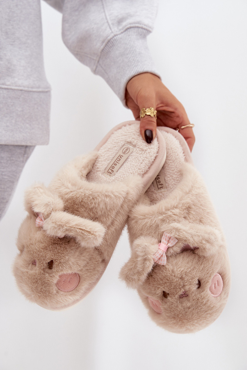 con una pelliccia Pantofole Femminile con le orecchie I Kokardką beige Corayne