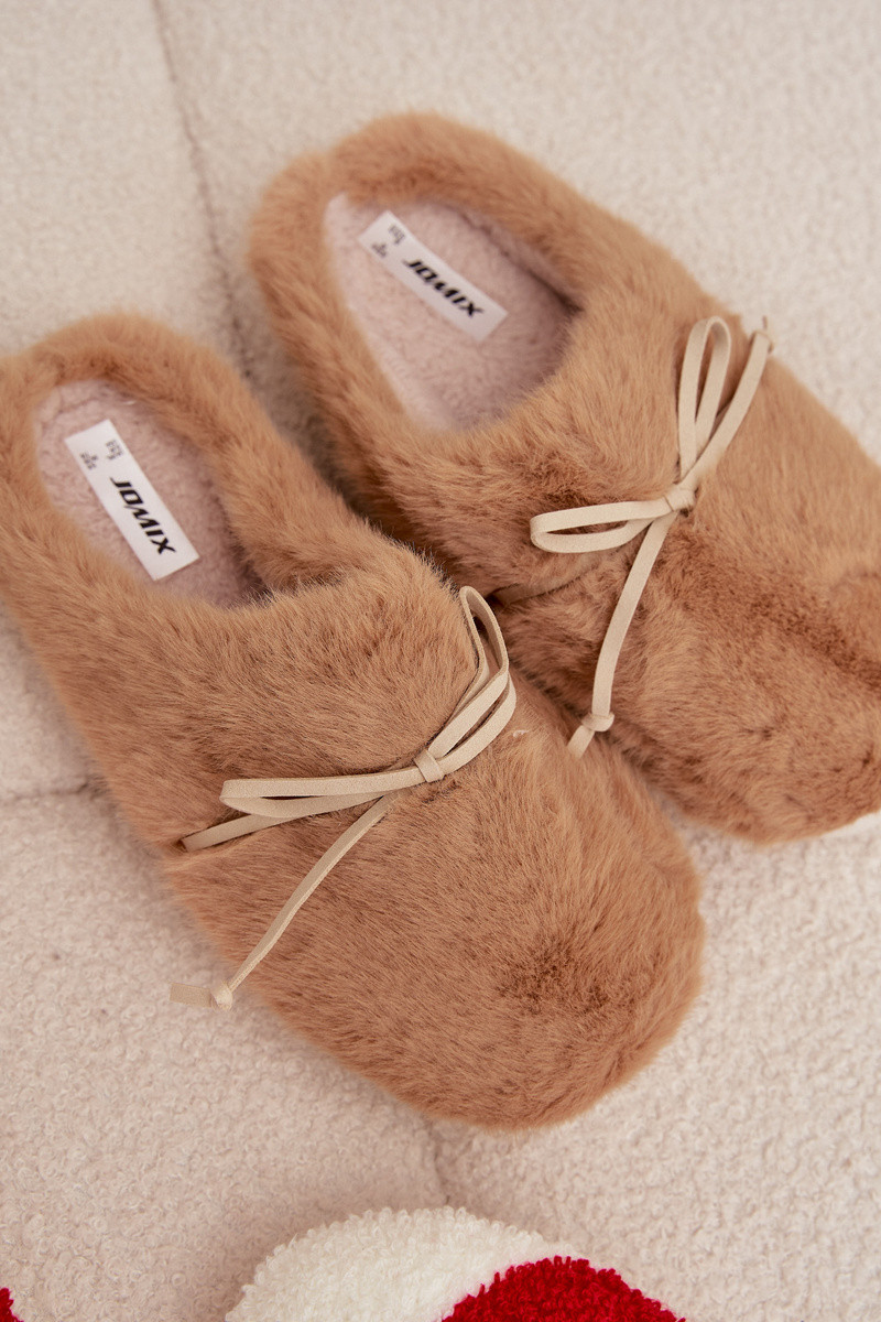 Ciabatte Minella marroni con pelliccia e fiocchi
