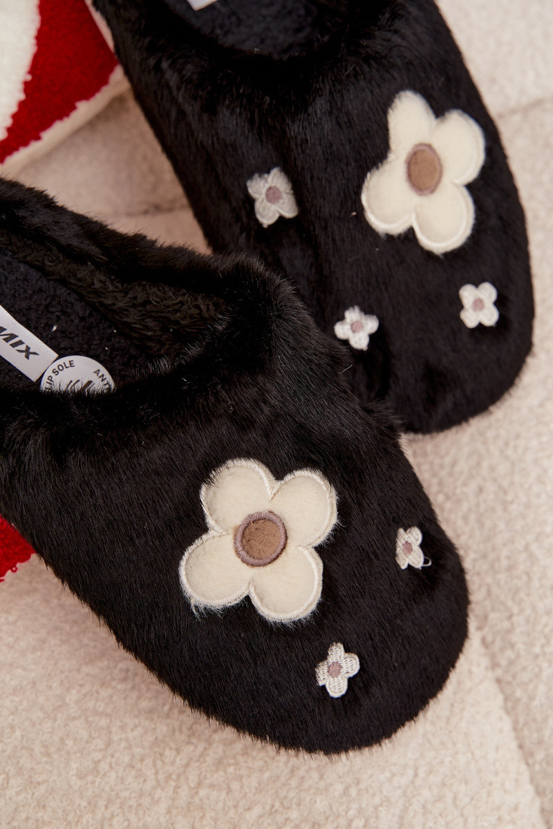 Ciabatte Selinne nere con pelliccia e motivi floreali