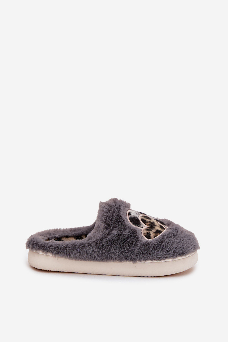 Ciabatte Amandra grigie con pelliccia e cuoricini