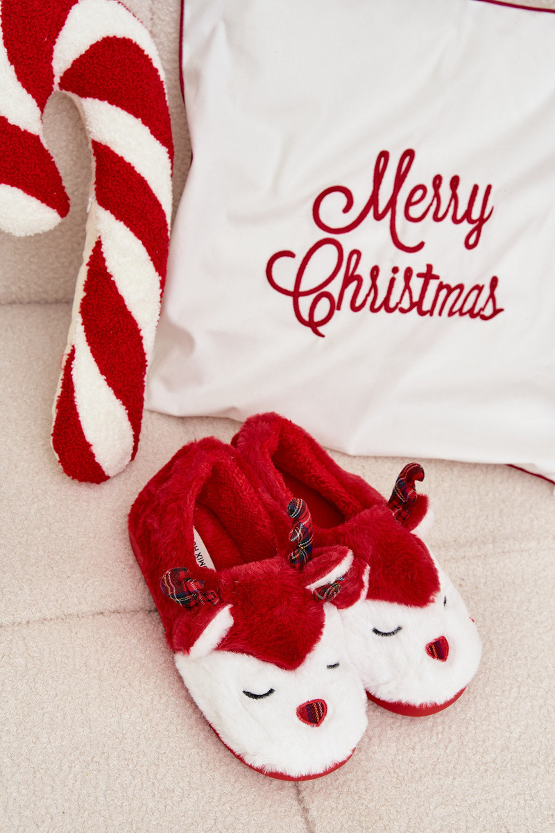 Ciabatte Orsella natalizie rosse da donna con pelliccia e motivi di renna