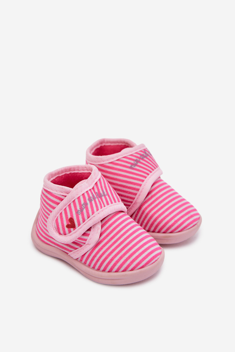 Pantofole rosa per bambino con chiusura adesiva e strisce Lavelle