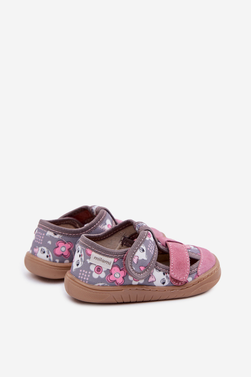 Infradito da bambino Milami con gattini e fiori color grigio-rosa Lumi