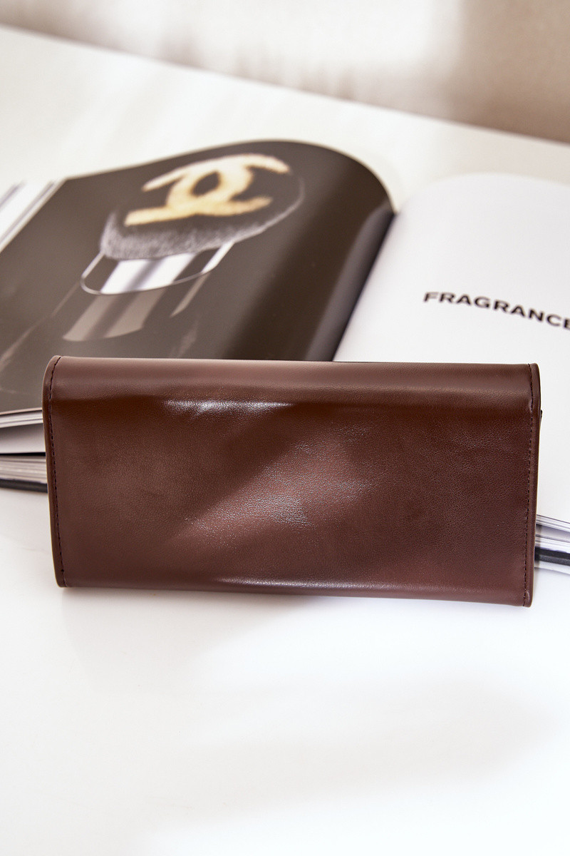 Portafoglio da donna in pelle sintetica liscia color cioccolato Erolia