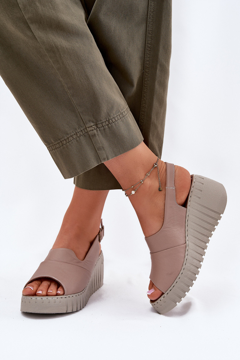 Sandali da donna sabbia in pelle naturale con plateau, Artiker 54C0788