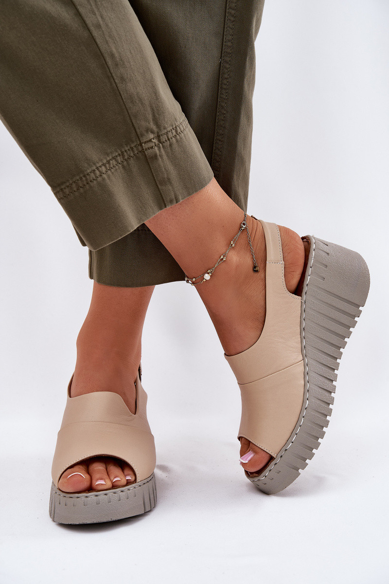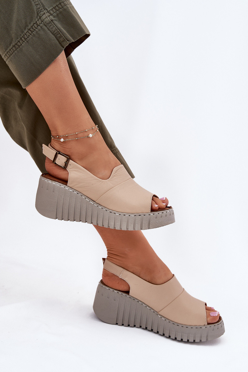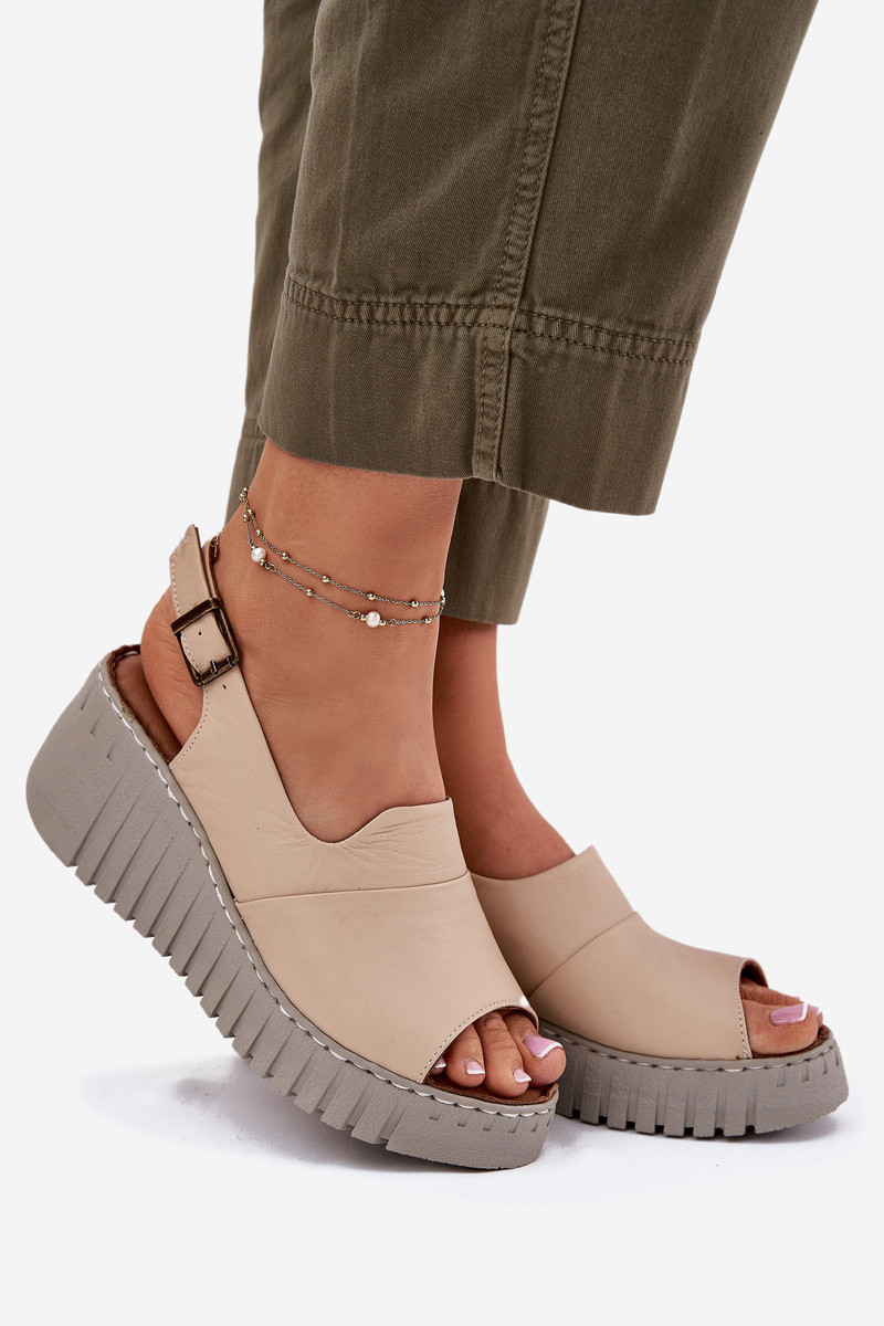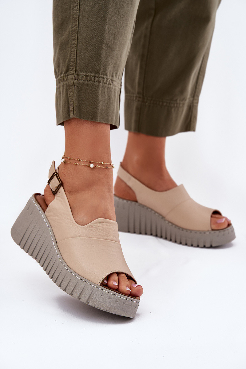 Sandali da donna sabbia in pelle naturale con plateau, Artiker 56C0957