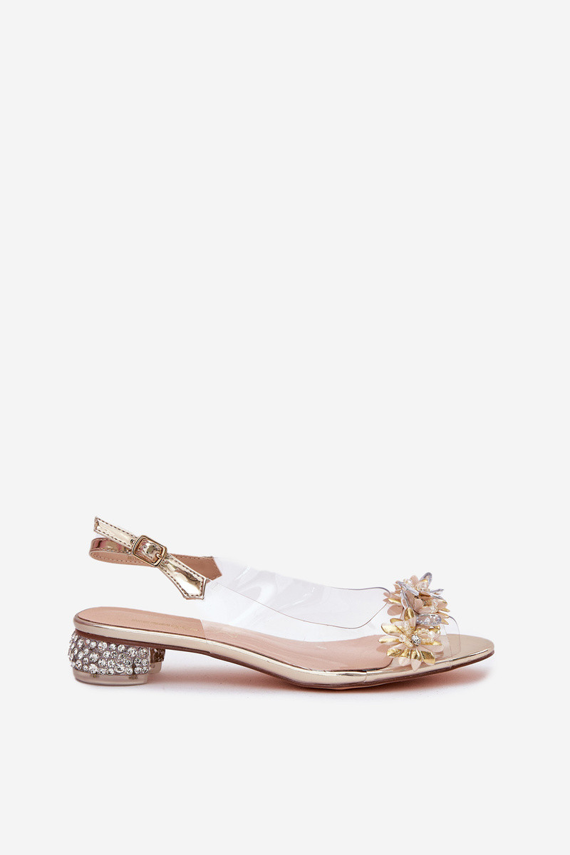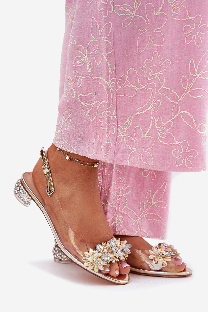 Sandali trasparenti con tacco basso e decorazione D&A MR51-709 color oro